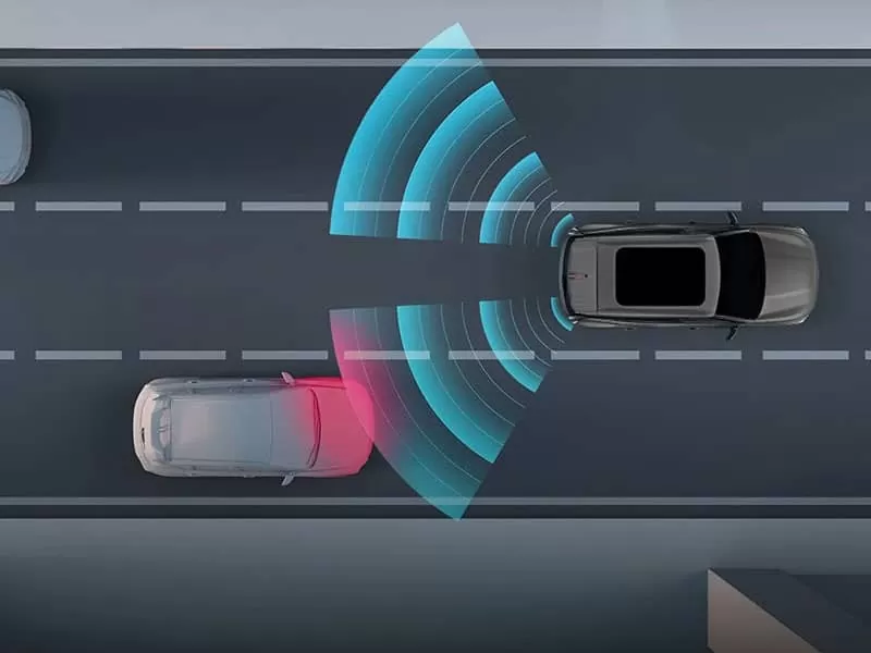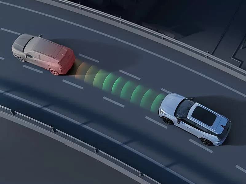 Cruise controlul adaptiv menține distanța de siguranță față de vehiculul din față și accelerează sau frânează automat în intervalul de viteză de la 0 la 150 km/h.